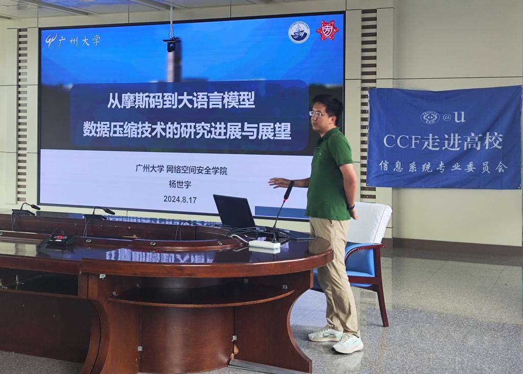 开幕式后,国防科技大学赵翔教授、广州大学杨世宇教授、南京航空航天大学李博涵副教授,分别以《解锁大模型的应用创新:数据增强、推理引导与协作优化》《从摩斯码到大语言模型:数据压缩技术的研究进展与展望》和《初探序列推荐:从深度学习与大模型到跨域与多行为推荐的研究进展》为题进行了学术报告,为参会师生分享了各自的研究成果。
