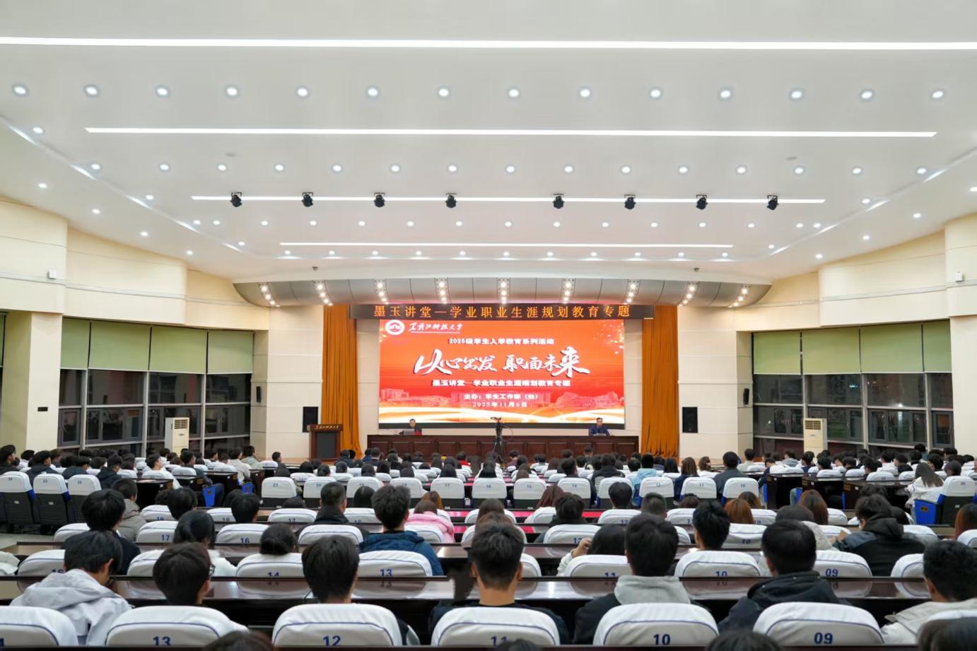 在2025级学生逐步适应大学生活的关键阶段,为进一步唤醒学生生涯意识,引导学生明确成才目标、制定学业规划,11月6日,学工部(处)在办公楼报告厅举办了“墨玉讲堂”。讲堂采用了“线上+线下”“主会场+53个分会场”的灵活形式,实现了4000余名学生同上一堂课。讲堂邀请了学校党委宣传统战部部长高志刚担任主讲嘉宾。