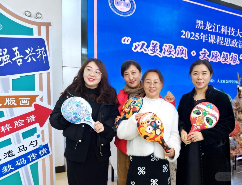 校史版画系列以刀为笔,将学校从艰辛初创到服务能源报国的红色历程精准镌刻,使黑科大精神谱系实现可视化呈现;国粹脸谱作品在传统纹样基础上融入现代设计语言,非遗马勺则以浓烈色彩诠释传统美学与龙江坚韧质朴的地域精神在此碰撞共生;数码传情创作专区更显跨学科活力,学生们用镜头中的“数码美景”演绎着古今美学的奇妙嬗变,印证了学校“五育并举”的人才培养体系下课程思政的实践成效。